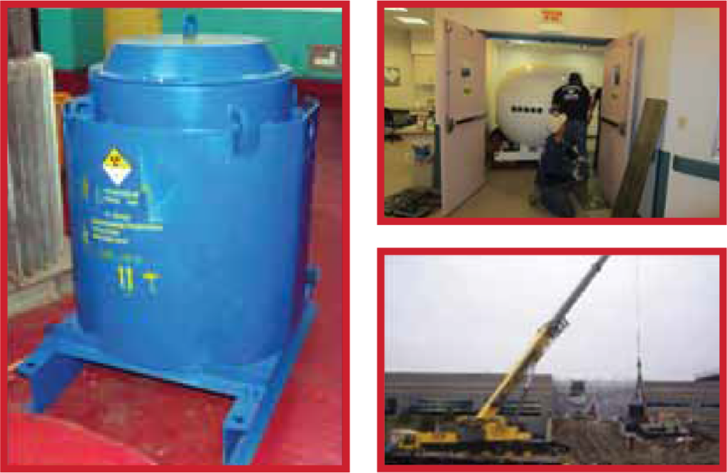 - All rigging, container transport, licensing, machine source removal and source disposal